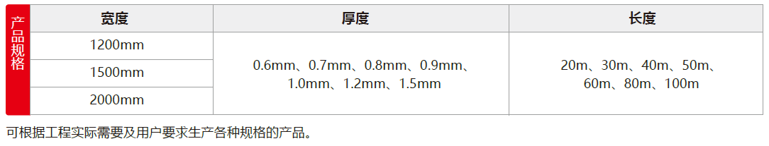 該產品屬合成高分子類防水卷材,具有抗滲能力強、抗拉強度高、低溫柔性好、線脹系數小、耐化學性能好、變形適應能力強、適應溫度范圍寬、無毒、使用壽命長等優良的綜合技術性能。