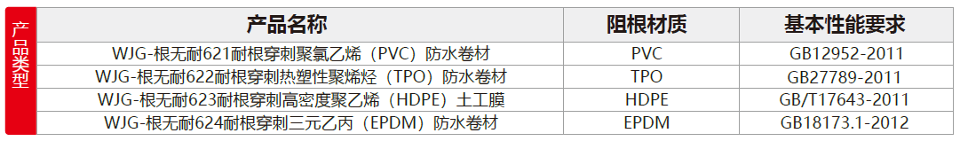 產品應用性能應符合GB/T 35468—2017《種植屋面用耐根穿刺防水卷材》標準要求。