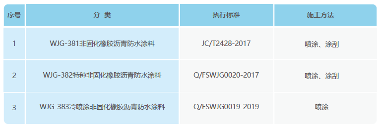 WJG-382特種非固化橡膠瀝青防水涂料性能指標(biāo)符合《特種非固化橡膠瀝青防水涂料》(Q/FSWJG0020-2017) 標(biāo)準(zhǔn)要求
