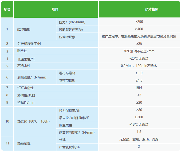 本產品是建國偉業集團自主研發生產的金屬屋面專用自粘防水卷材,以交叉膜做為胎基,雙面覆以特殊自粘膠料,上表面覆以高品質金屬鋁箔而制成的防水卷材。